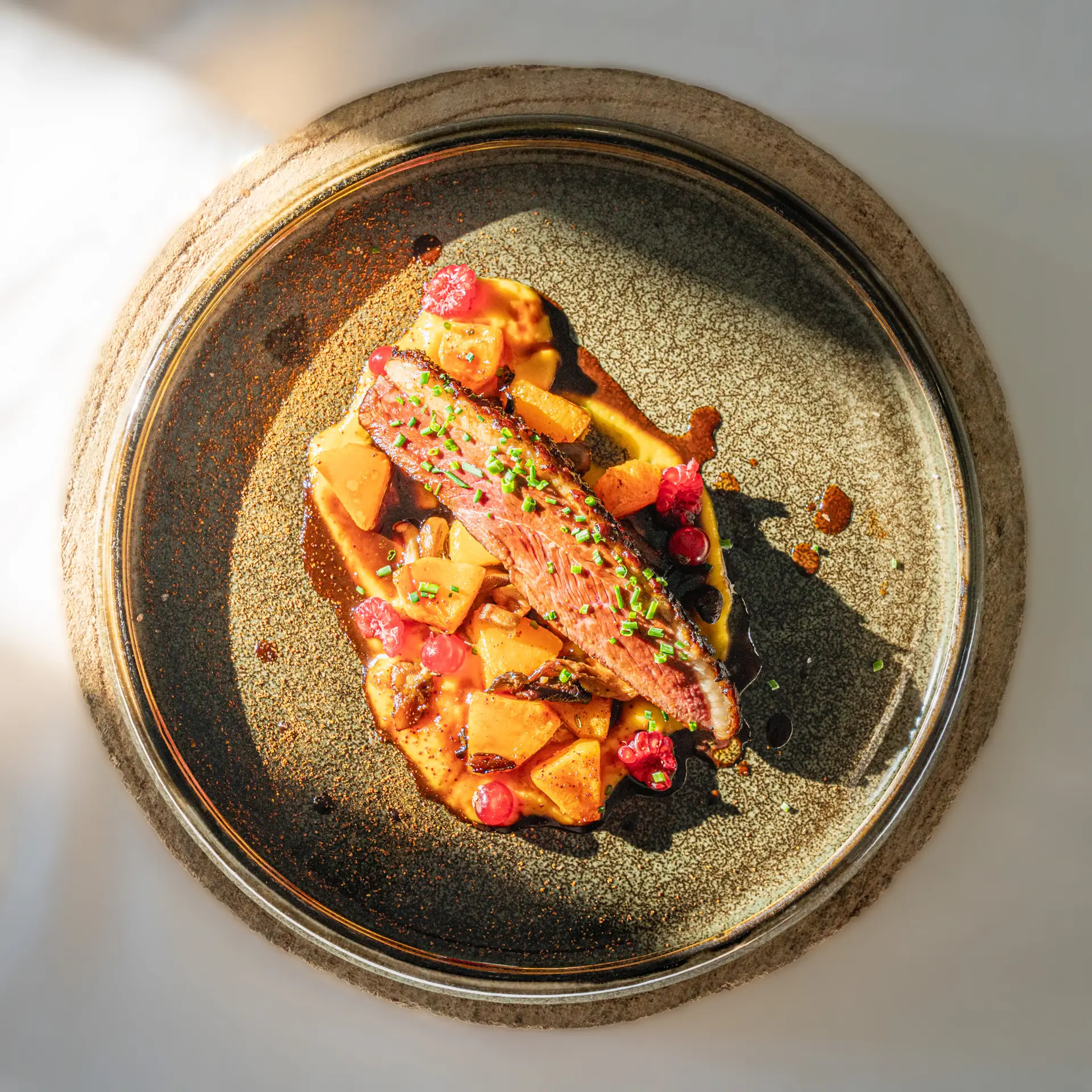 La lumière est l’élément principal qui permet de donner vie à un plat. Elle révèle les textures, rehausse les couleurs et oriente le regard vers les éléments clés du plat.